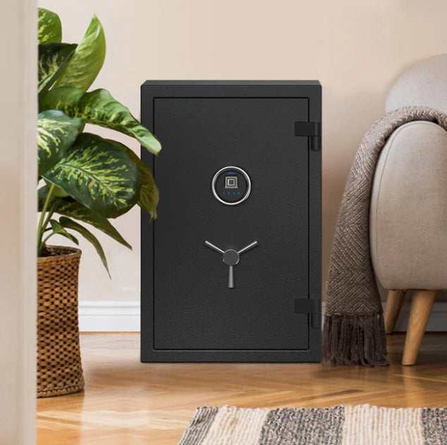 Ensure your valuable collection remains safeguarded with this customized fireproof vault featuring a state-of-the-art biometric fingerprint sensor, offering the utmost protection against fire and theft.